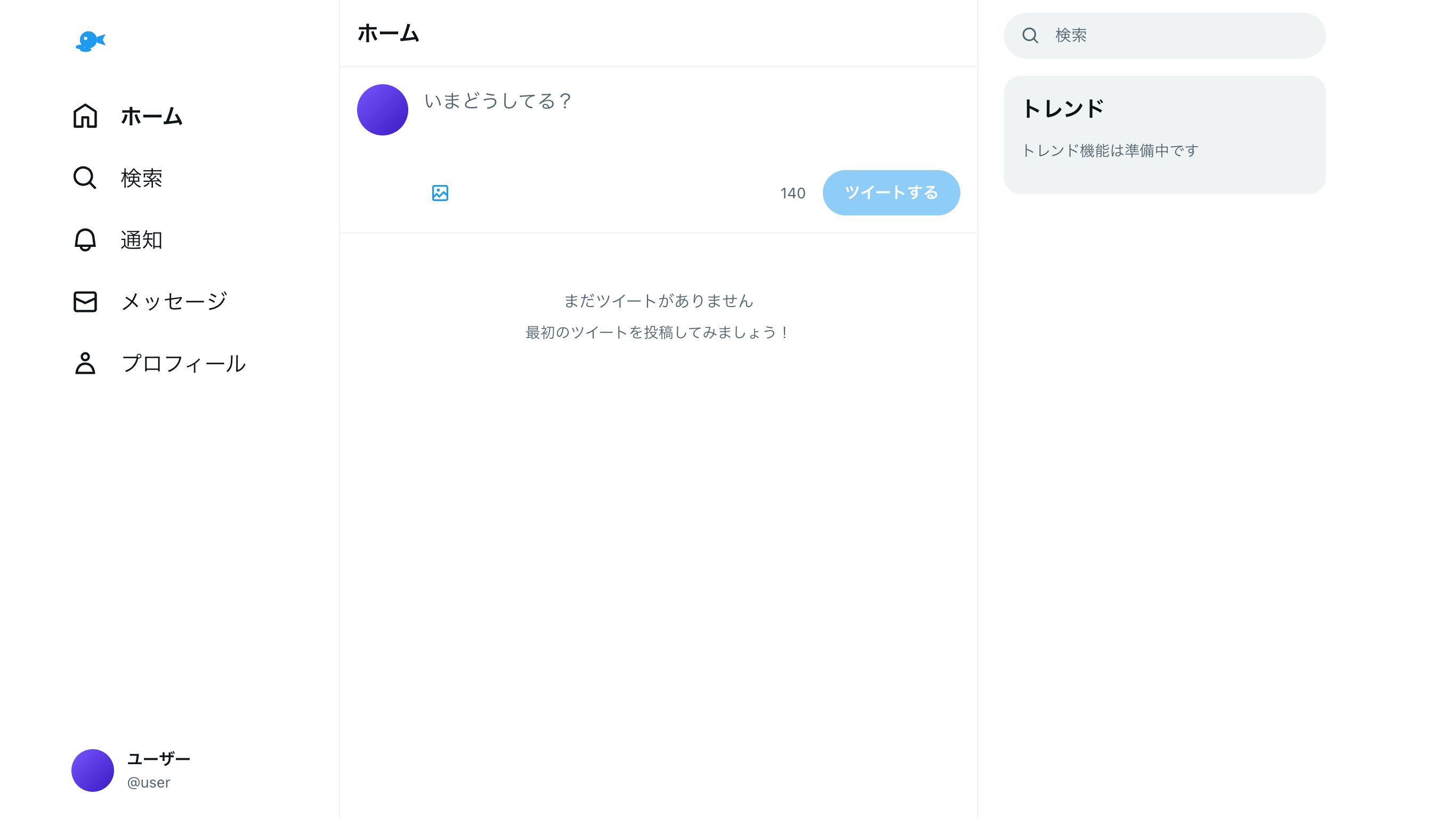 ツイートの投稿ができます。投稿したツイートはインターネットには送られず、内容はブラウザ内の localStorage と IndexedDB に保存されるようになっています。